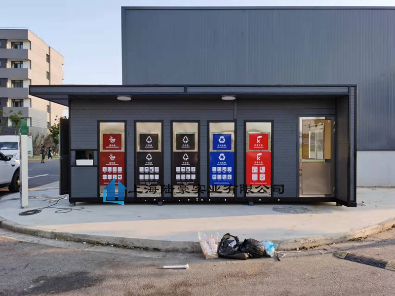 產品編號:垃圾房C-45(大型垃圾分類收集房) 規格尺寸:8.0*3.0*2.8米(可定制各種規格) 制作工藝:鋼結構龍骨焊接一體成型,外墻為金屬雕花板